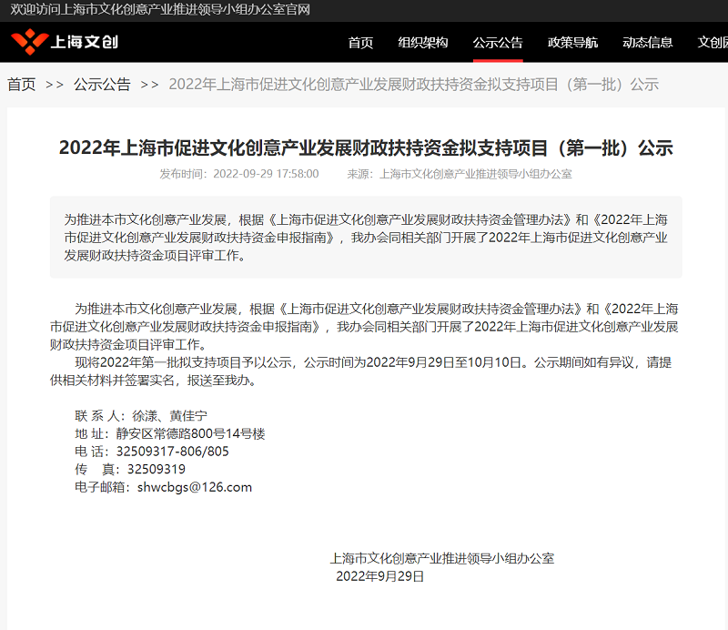 喜报!我校1项目获批2022年上海市促进文化创意产业发展财政扶持资金