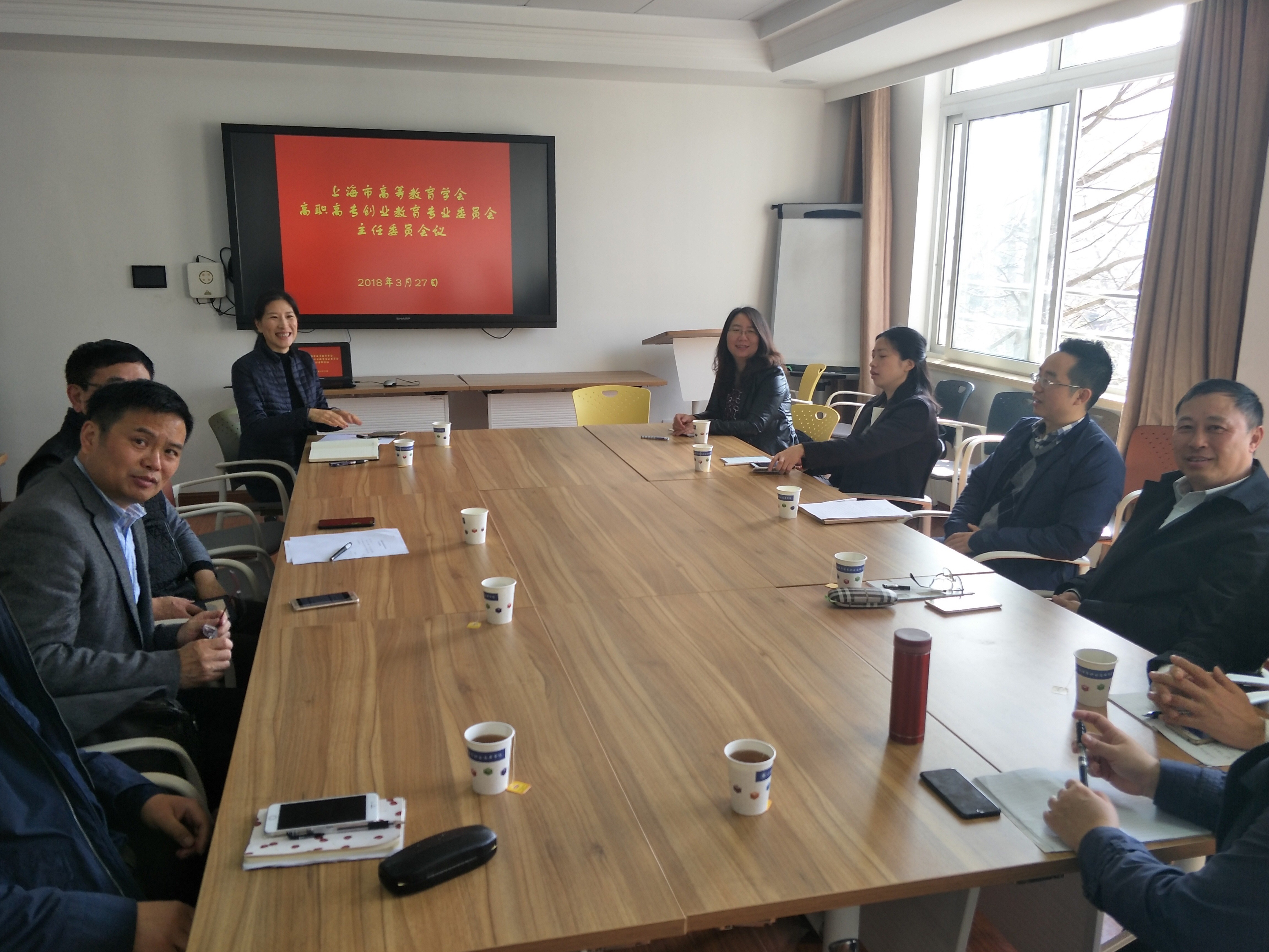 2018年3月27日,上海市高等教育学会高职高专创新创业专门委员会主任委员会议在我校召开,上海市教委高教处副处长赵坚博士,创新创业专委会主任朱建新先生及专委会全体副主任委员出席了会议,我校副校长窦争妍教...