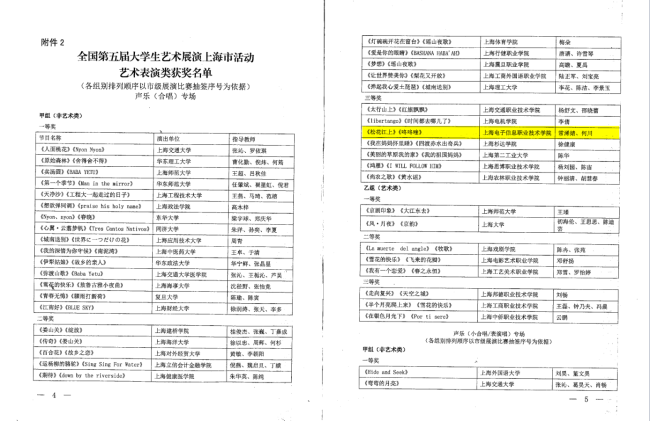 学校喜获“全国第五届大学生艺术展演上海市活动”二等奖2个、三等奖5个