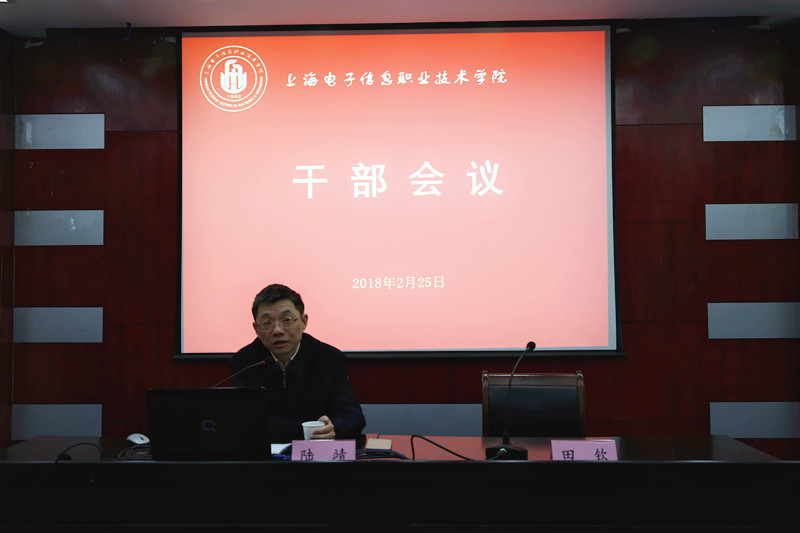 2018年2月24至25日,学校在徐汇校区106报告厅召开了干部会议,特邀上海市教育委员会主任陆靖、上海市委党校梅丽红教授、中国职业教育学会副会长、上海教科院高职研究中心主任马树超教授、上海市教委高...
