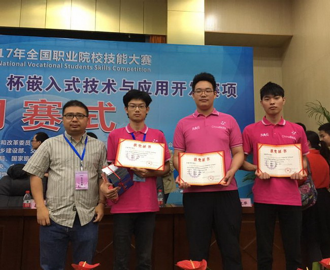 2017年6月3日,在全国职业院校技能大赛西安赛区举行的比赛中,由我校电子技术与工程学院学生胡晓波、陈首源、柳峥,指导教师沈毓骏、徐御组成的代表队在全国职业技能大赛高职组“百科融创”杯嵌入式技...