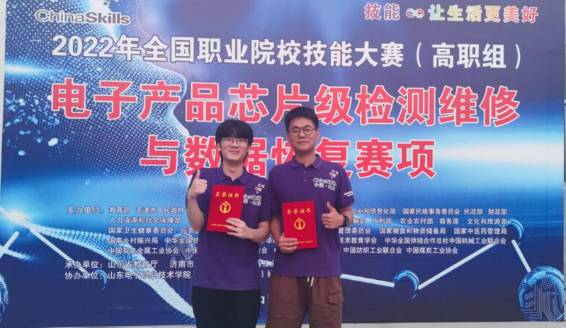 8月23-25日,2022年全国职业院校技能大赛(高职组)电子产品芯片级检测维修与数据恢复赛项比赛在山东电子职业技术学院举行。我校由电子技术与工程学院邓海平、徐御老师指导的参赛队从50支队伍中脱颖而出,荣获获团...