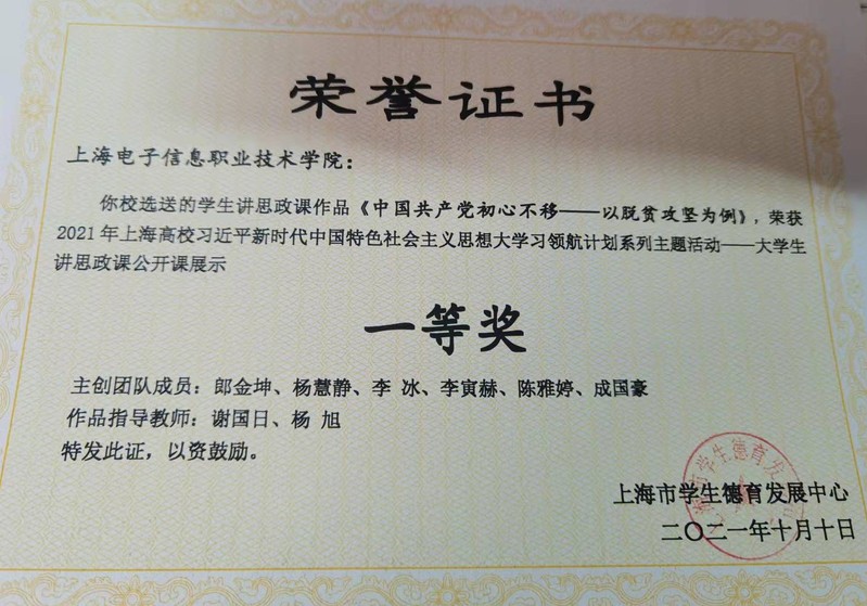 我校学生获上海市大学生讲思政课公开课展示一等奖