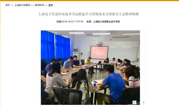 上海教卫党建网10月22日对我校掀起学习贯彻落实全国教育大会精神热潮进行报道