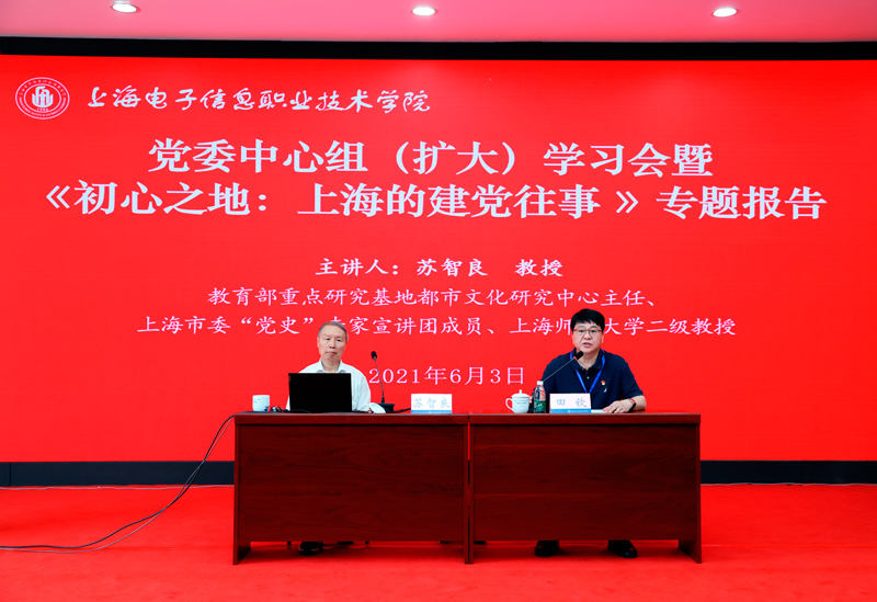 6月3日下午,学校在奉贤校区C108报告厅举行党委理论学习中心组(扩大)学习会。教育部重点研究基地都市文化研究中心主任、上海市委讲师团党史学习教育专家宣讲团成员、上海师范大学教授苏智良应邀来校作《初心之...