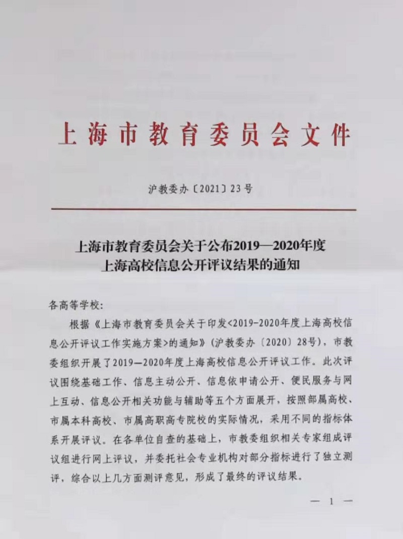 近日,上海市教委发布《上海市教育委员会关于公2019-2020年度上海高校信息公开评议结果的通知》(沪教委办〔2021〕23号),公布了2019-2020年度上海高校信息公开评议工作优秀单位。我校连续第四年获此殊荣。 ...