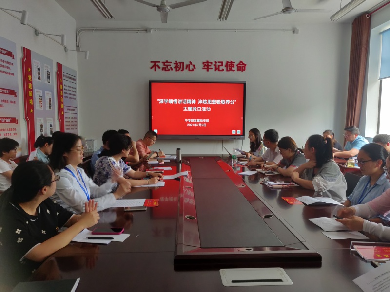 7月9日,中专部直属党支部组织全体党员开展“深学细悟讲话精神,淬炼思想吸取养分”主题党日活动,专题分享学习体会、畅谈感悟,迅速掀起学习热潮。 会前,支部号召党员教师先学一步、学深一层,结合自身工作...