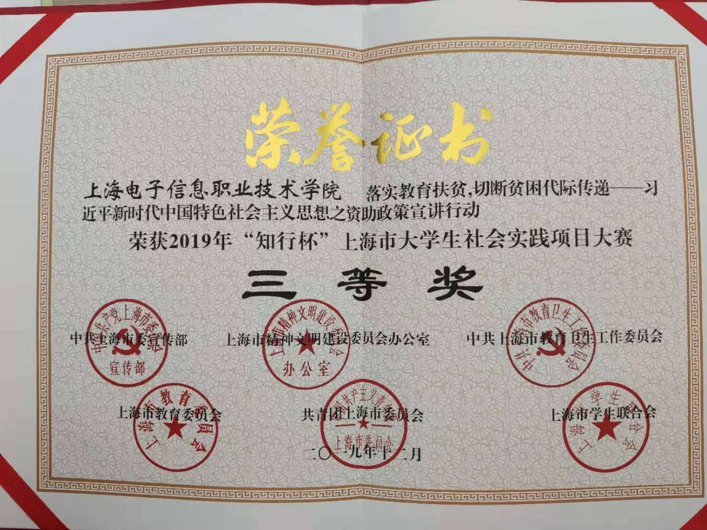 近日,由市委宣传部、市文明办、市教卫工作党委、市教委、团市委和市学联联合主办的“知行杯”上海市大学生社会实践项目大赛公布了获奖名单。其中,电子技术与工程学院“落实教育扶贫,切断贫困代际...