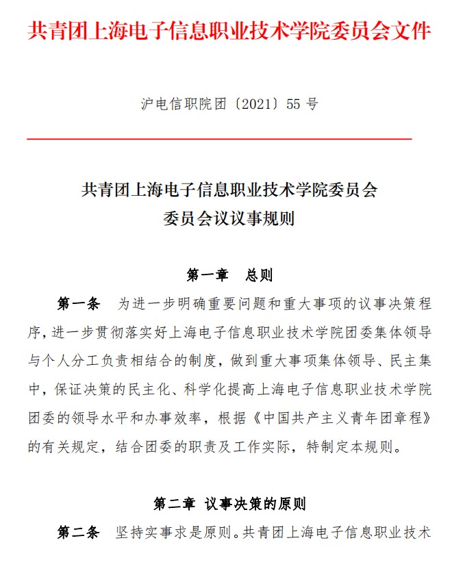 共青团上海电子信职业技术学院委员会委员会议议事规则