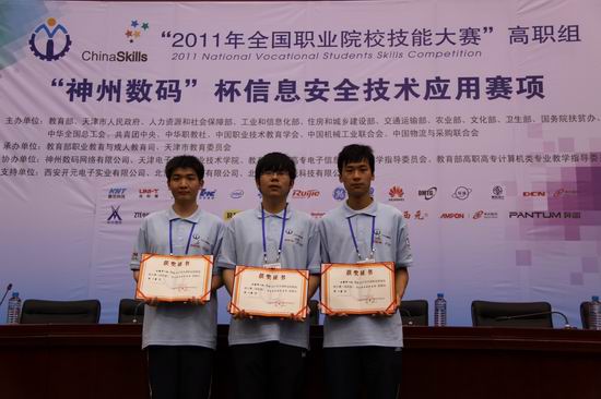 2011年全国职业院校技能大赛于6月24号至27号在天津举行,由我院计算机应用系学生刘磊、操召旺、张文炳和指导教师邱洋,计大威组成的代表队,从全国37个省、市、自治区的代表队中脱颖而出,勇夺"神州数码&qu...