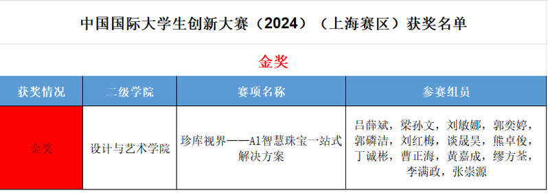 近日,上海市教育委员会公布了中国国际大学生创新大赛(2024)(上海赛区)获奖名单。我校学生团队获金奖1项、银奖10项、铜奖19项、优胜奖11项。同时,我校被评为“优秀组织单位”。银奖铜奖我校对此次大赛的备赛参...