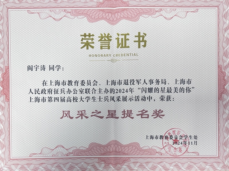 我校学子获上海市第四届退役大学生士兵风采之星提名奖
