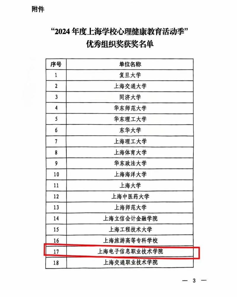 我校获2024年度上海学校心理健康教育活动季优秀组织奖