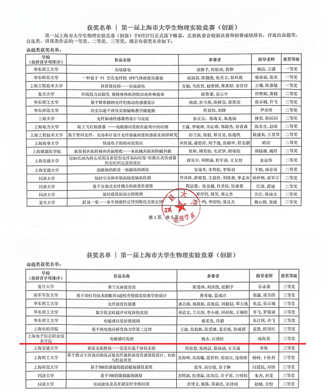 我校在第一届上海市大学生物理实验竞赛中取得佳绩