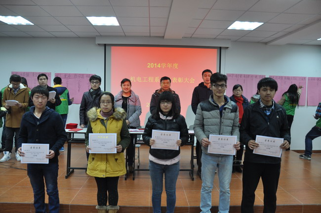 2015年1月8日,“学院机电工程系2014学年学生表彰大会”在H2403举行。 会上,老师们为在“国家励志奖学金”、“三好学生”、“全国数学建模大赛”等项目中获奖的同学,颁发了获奖证书。(机电工程系)&nbs...