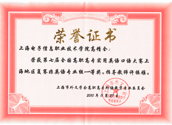 2010年11月27日,第七届全国高职高专实用英语口语大赛上海赛区复赛在上海政法学院拉开了帷幕。28名来自全市高职高专院校的英语专业和非英语专业选手参加了当天的比赛,经过激烈的角逐,我校经济与管理系2008级国...
